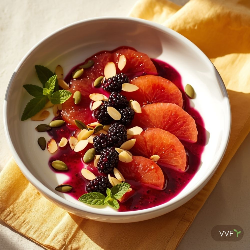 Miso-Glazed Grapefruit & Blackberries over Cooling Soy Yogurt – 22g Protein | Vegan Breakfast